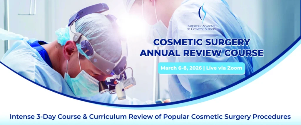 This course is for intermediate to advanced cosmetic surgeons looking for a refresher. It is also a preparatory course for those planning to sit for the American Board of Cosmetic Surgery exam or the American Board of Facial Cosmetic Surgery exam.